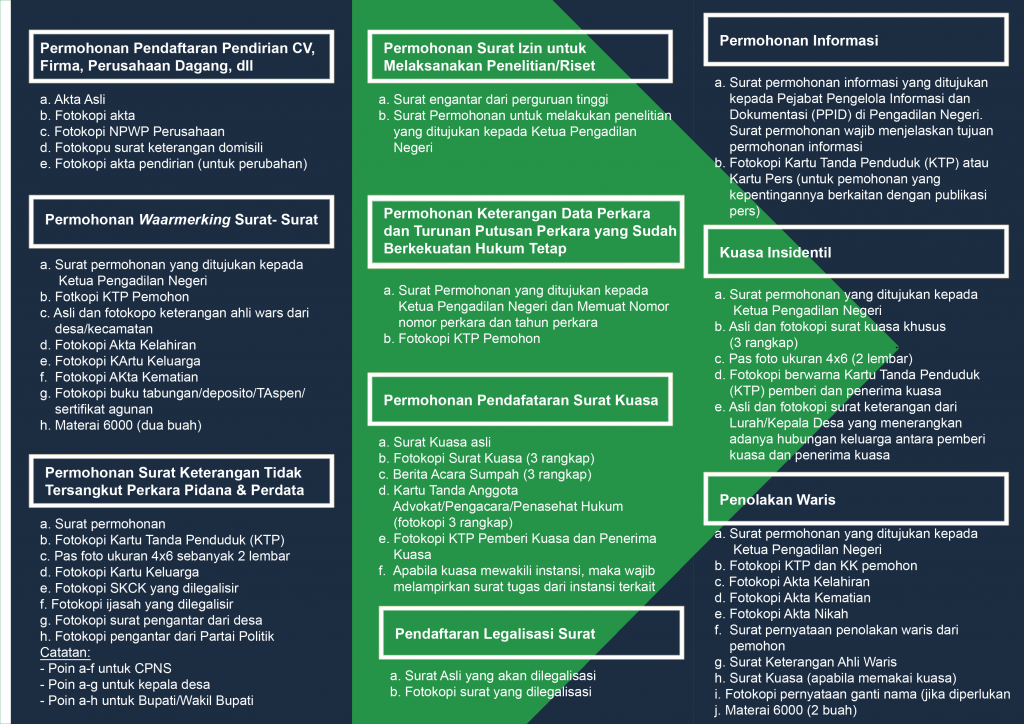 Pelayanan di Kepaniteraan Hukum serta persyaratan yang dibutuhkan :
